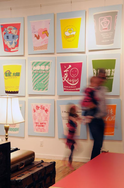 Here's a few things that make interesting art: Big, graphic statements. Variations on a theme. Seemingly mundane objects raised to the level of art. The Midyette Family does all these things very well with their paintings of coffee cups they collected from New York City. Image via Apartment Therapy.